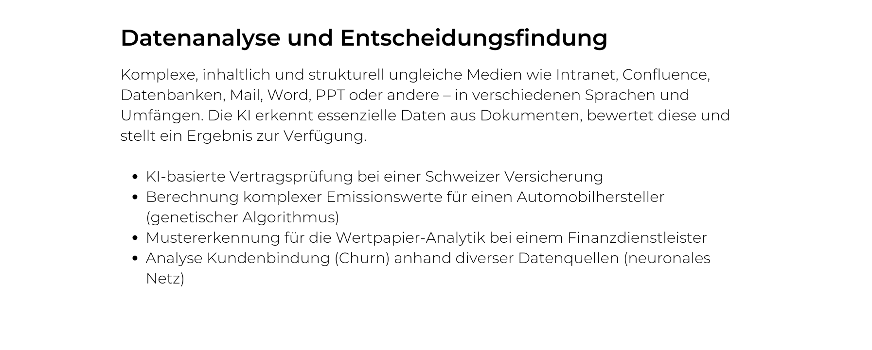 Künstliche Intelligenz, die Ihre individuelle Sprache in Ihrem Unternehmen spricht. Wir unterstützen Sie bei der Auswahl und der reibungslosen Integration der KI in Ihr Unternehmen.