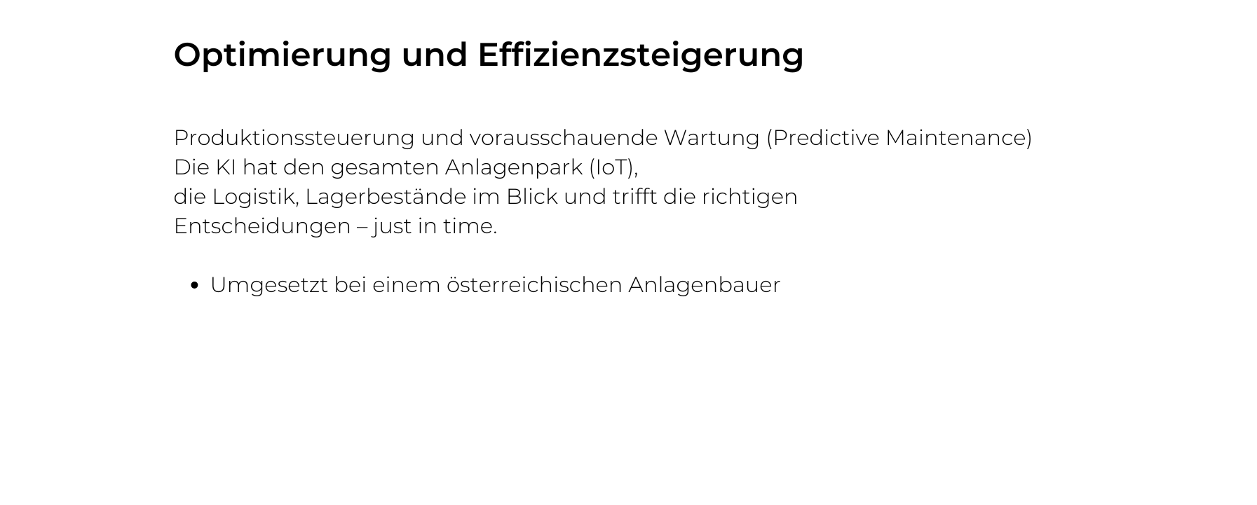 Ziel unserer Integration ist es, die Fähigkeiten und Vorteile der KI zu nutzen, um die Funktionalität, Effizienz und Entscheidungsfindung in verschiedenen Bereichen Ihres Unternehmens zu verbessern.