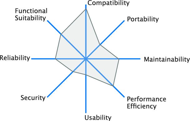 Compatibility, Portability, Maintainability, Performance Efficiency, Security, Usability, Reliability, Functional Suitability. Nutzung von Architektur-Review Methoden wie ATAM, CBAM, QAW. ARID, Pre-Mortem Meetings werden adaptiert.