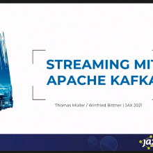Das erste Mal vor Kamera...Thomas Müller berichtet von seinem ersten Remote-Vortrag zum Thema "Streaming mit Apache Kafka", den er zusammen mit seinem Kollegen Winfried Bittner auf der JAX 2021 gehalten hat.