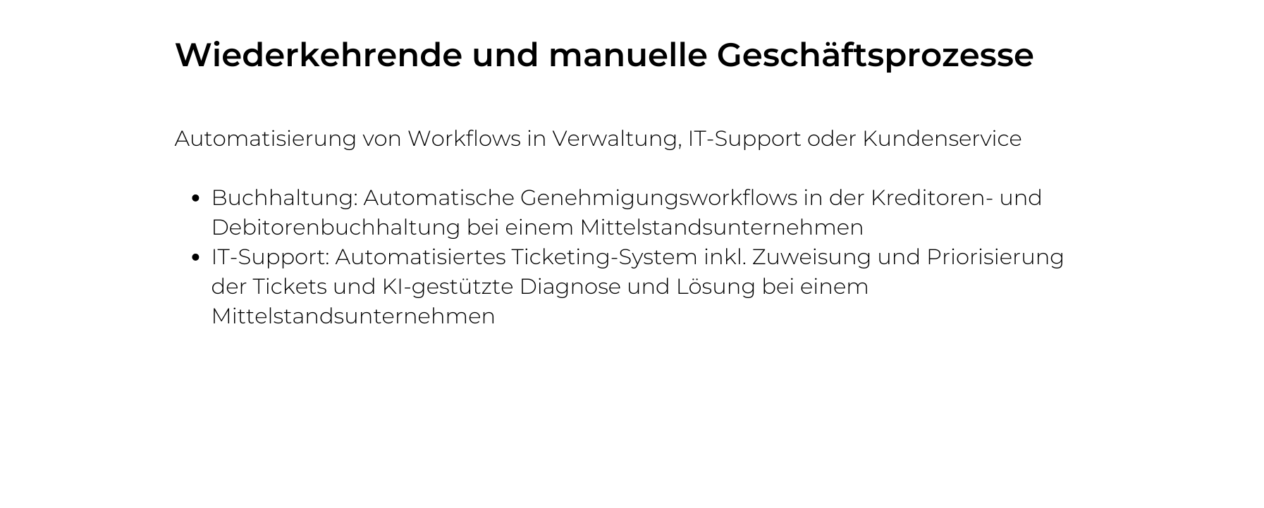 Ziel unserer Integration ist es, die Fähigkeiten und Vorteile der KI zu nutzen, um die Funktionalität, Effizienz und Entscheidungsfindung in verschiedenen Bereichen Ihres Unternehmens zu verbessern.